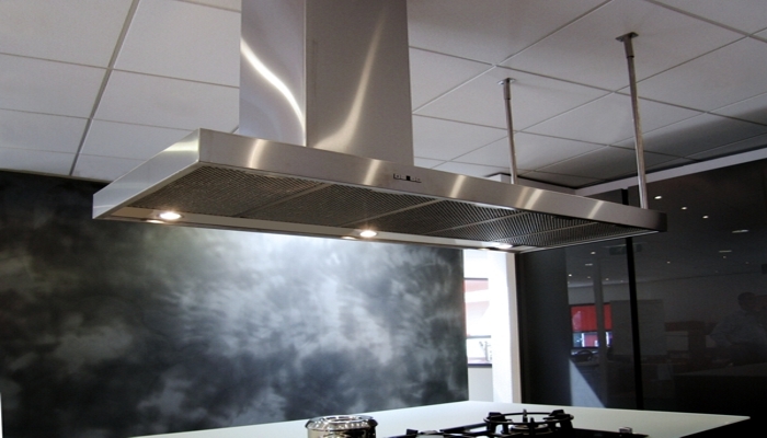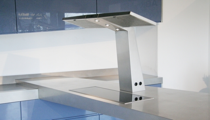 Les hottes WARRIMOO sont des hottes qui se montent sur le plan de travail. L’aspiration se fait par la colonne centrale, laquelle doit être reliée avec un moteur d’aspiration déporté. Il est possible de placer des filtres à charbon afin de recycler l’air par les plinthes des meubles de cuisine. Il est possible d’intégrer des prises de courant dans la colonne centrale.